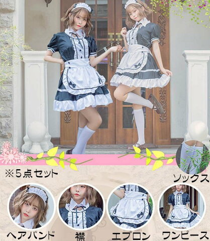 セット内容 .❁.:* ワンピース/エプロン/ヘアバンド/襟/ソックス「記載のないアクセサリー、小物等は付属しません」 素材 .❁.:* ポリエステル カラー .❁.:* ブラック サイズ (cm) .❁.:* M/着丈70 バスト90 肩幅37 ウエスト78L/着丈73 バスト94 肩幅38 ウエスト82XL/着丈78 バスト98 肩幅39 ウエスト862XL/着丈82 バスト104 肩幅40 ウエスト903XL/着丈90 バスト108 肩幅41 ウエスト94※表記寸法と実寸値の多少の誤差はご容赦ください。